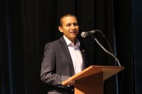 El Director de la ENMS Celaya y anfitrión del evento, Mtro. Guillermo Ramos Palma, dirigió un mensaje de bienvenida a toda la comunidad estudiantil y docente.