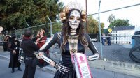 Ya fuera con maquillaje, cartonería o antifaces, el espíritu del Día de Muertos se experimentó con intensidad a lo largo de tres horas aproximadamente, donde pudieron apreciarse bellas indumentarias tradicionales, como la de Esteban Rafael, integrante del grupo cultural La Catrina Salmantina.