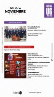 La creatividad estudiantil también se hará presente con la muestra de talleres artísticos del periodo agosto-diciembre 2025. El lunes 10 a las 17:00 horas, el taller de canto ofrecerá una presentación en el Mesón de San Antonio; el martes 11 a las 20:00 horas, el taller de danza contemporánea “Génesis” presentará “Mujeres bajo techos de cristal” en la Plazuela de San Roque; y el viernes 14 a las 17:00 horas, el taller de música regresará al Mesón de San Antonio para cerrar la semana con un recital lleno de talento universitario.