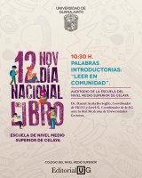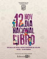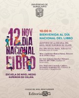 Guanajuato, Gto., a 11 de noviembre de 2025.- Como parte de la conmemoración del Día Nacional del Libro, la Universidad de Guanajuato (UG) ha preparado un programa de actividades para el próximo 12 de noviembre, esta vez en la Escuela de Nivel Medio Superior (ENMS) de Celaya.