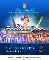 Guanajuato, Gto., a 28 de noviembre de 2025.- En el marco de su 40º aniversario, el Ballet Folklórico de la Universidad de Guanajuato (Bafug), bajo la dirección del Mtro. Roberto Martínez Rocha, presentará la gala “Tradiciones Vivas”, el 29 de noviembre las 19:00 horas en el Teatro Juárez, una celebración que reúne color, música y expresión escénica para rendir homenaje a la riqueza cultural de México.