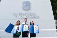 Como parte de la mesa del presídium y responsables de la entrega de la medalla y reconocimiento estuvieron presentes la Dra. Luz Elvia Vera Becerra, Directora de la División de Ciencias de la Salud; el Dr. Luis Arturo Ureña López, Secretario Académico de la División de Ciencias e Ingenierías; la Dra. Marcela Martínez Rodríguez, Secretaria Académica de la División de Ciencias Sociales y Humanidades; y la Dra. Ana Lilia González Yebra, Coordinadora General de Desarrollo Académico.