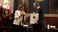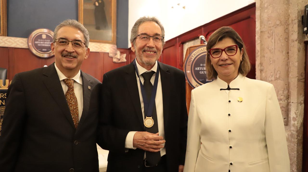 La entrega de este reconocimiento ocurrió en sesión solemne del Consejo General Universitario (CGU), el cual se concede a personas que destacan por sus excepcionales contribuciones al desarrollo de la ciencia, la tecnología, la educación, las humanidades, las artes y la cultura, y que han realizado una labor de valor extraordinario en beneficio del país o de la humanidad.