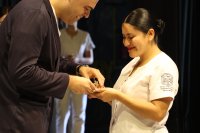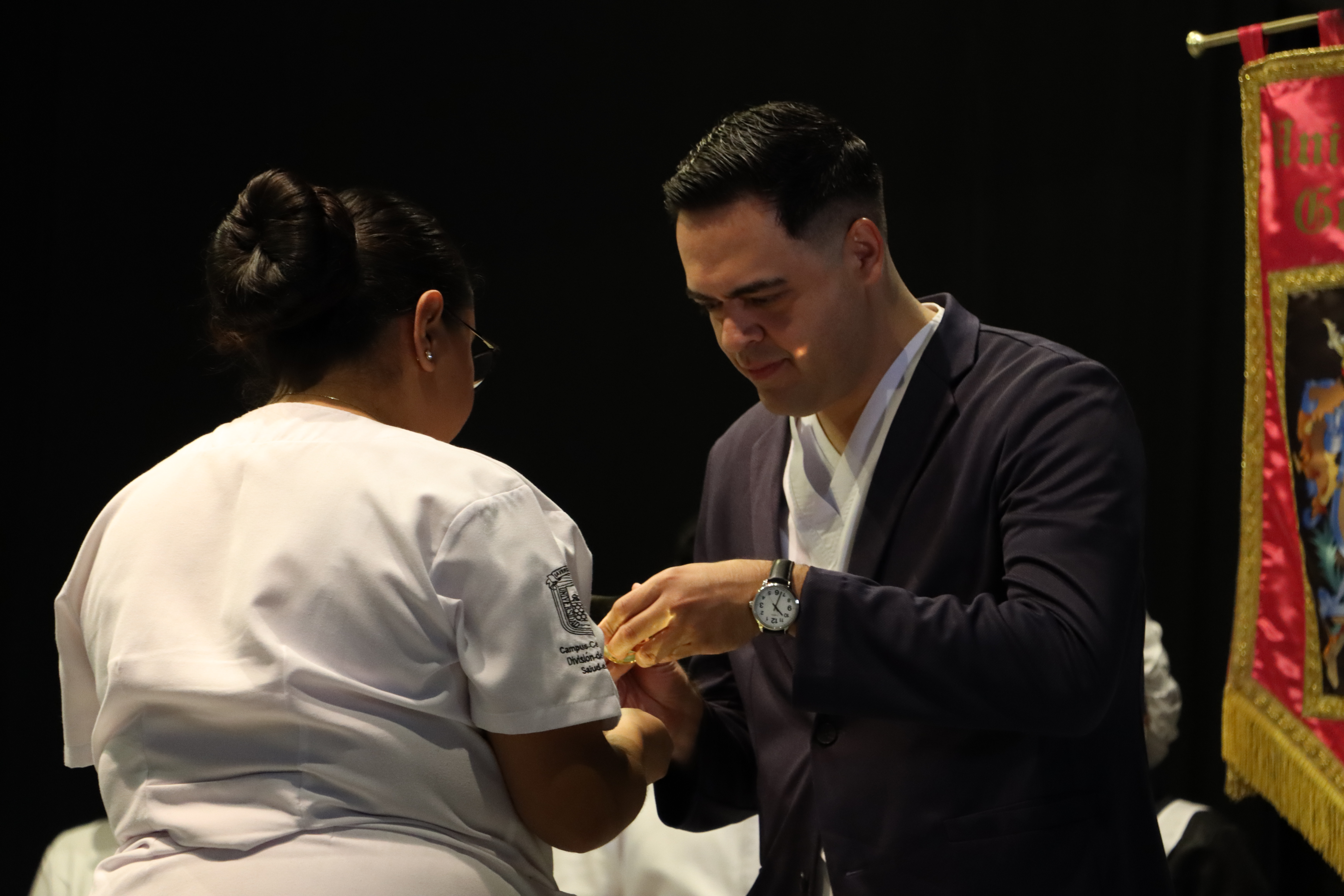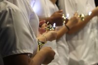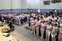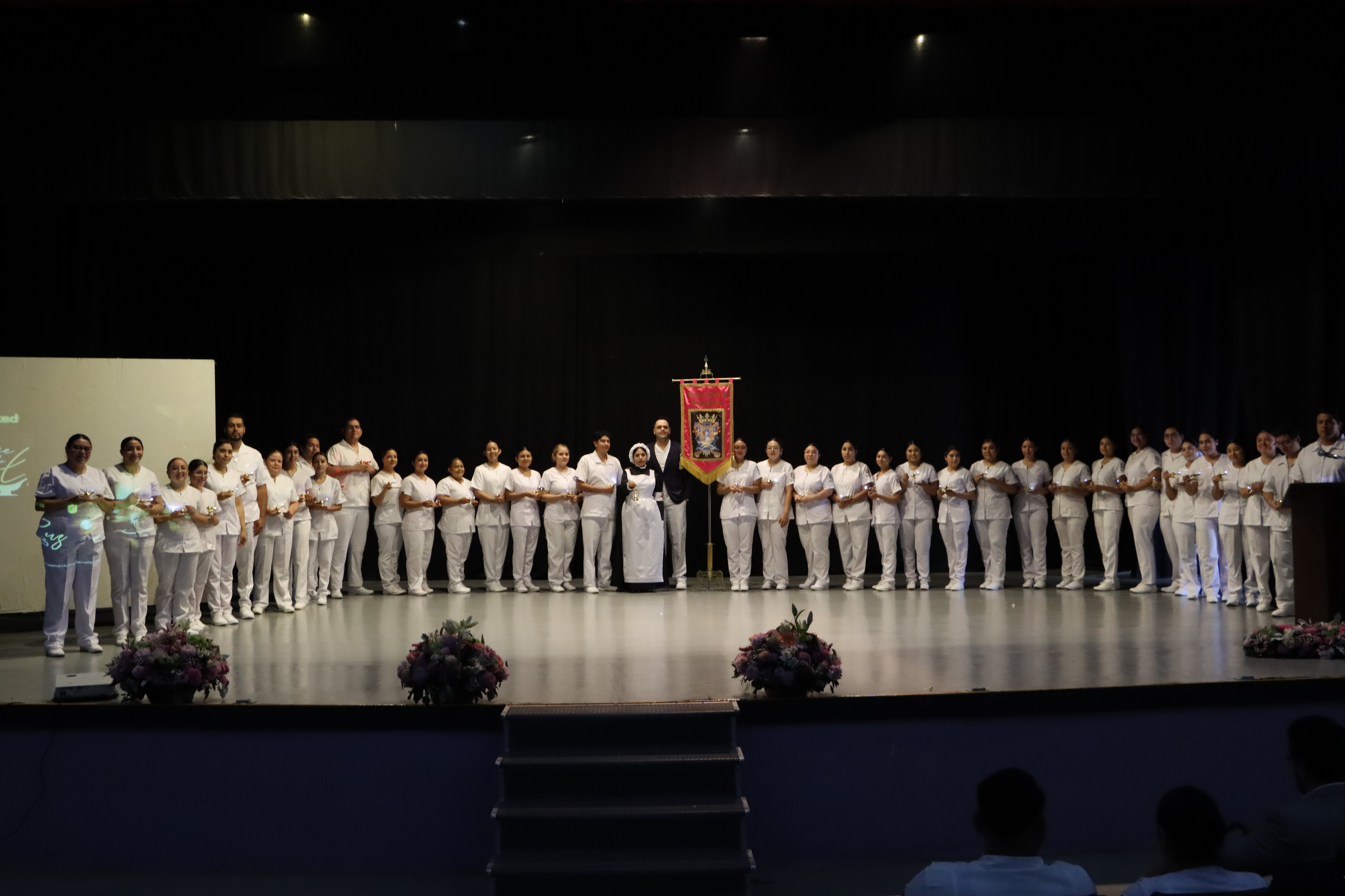 El acto solemne en donde la nueva generación de enfermeras y enfermeros reciben de manera simbólica la luz del conocimiento, reunió a autoridades universitarias, familiares y amistades de ciento cinco egresado(a)s de la Licenciatura en Enfermería, pertenecientes a la sede Juan Pablo II, Sede Janicho, y modalidad no escolarizada.