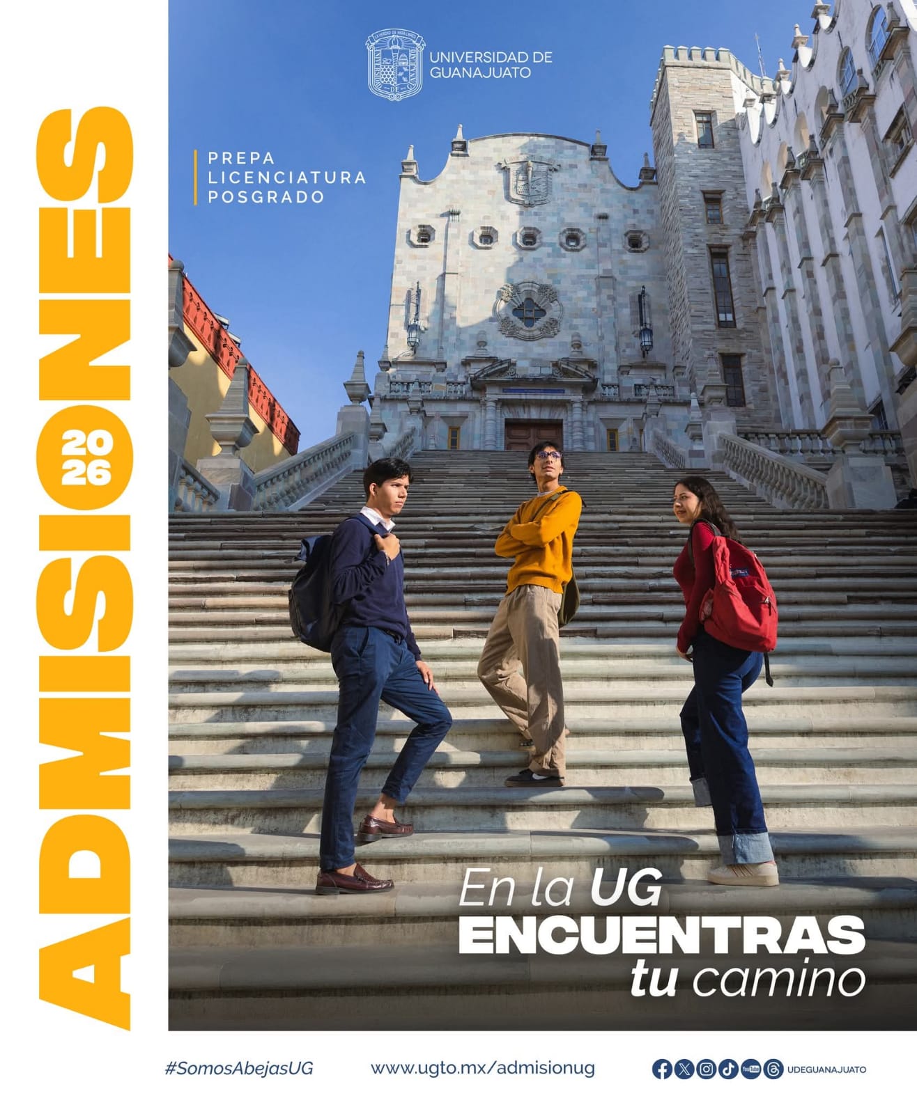 Guanajuato, Gto., a 26 de enero de 2026.- La Universidad de Guanajuato (UG) abre el periodo de registro para el Proceso de Admisión Agosto–Diciembre 2026 para los niveles de bachillerato, licenciatura y posgrado. Conoce las fechas clave y no pierdas la oportunidad de formar parte de la “Colmena UG”.