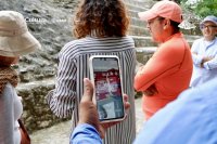Salamanca, Gto. a 18 de febrero de 2026.- Académicos y estudiantes de la Licenciatura en Artes Digitales de la Universidad de Guanajuato (UG) aportaron sus obras en realidad aumentada para interactuar con contenido digital en el mundo real, en una exposición en la Zona Arqueológica de Ichkabal, Quintana Roo.