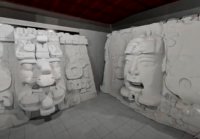 Los académicos Reynaldo Thompson López, Luis Aguilar Jaramillo y el alumno Carlos Villafán Parra, con el apoyo para el diseño del código de la Realidad Aumentada (RA) de Fabián Da Mota, Clara Carmina Granados y Alix Sandoval, instalaron cinco modelos en 3D de mascarones mayas generados con Inteligencia Artificial.