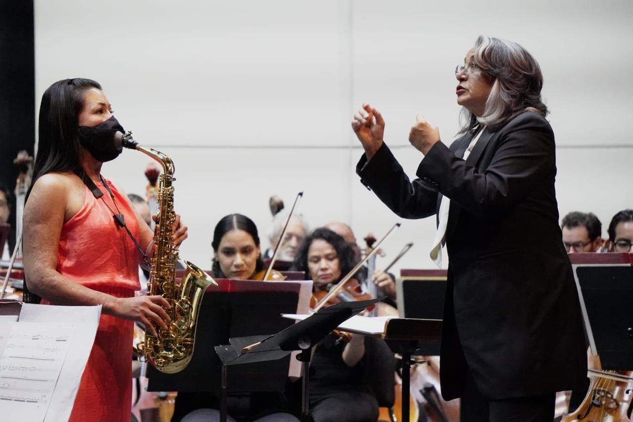 En el marco del Día Internacional de la Mujer (8 de marzo), el encuentro se volvió memorable con el estreno mundial de Ríos de esperanza (2026), concierto para saxofón alto y orquesta, de Leticia Armijo, compositora mexicana reconocida por su sólida trayectoria internacional y su compromiso con la creación contemporánea. La obra está dedicada a la saxofonista María Elena Ríos, sobreviviente de un ataque con ácido y promotora de la Ley Malena para tipificar este acto violento como tentativa de feminicidio.