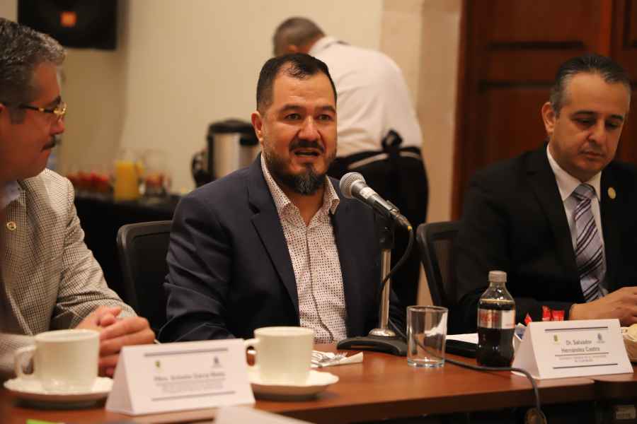 Por parte de la Universidad de Guanajuato, el Dr. Salvador Hernández Castro, Secretario General de la Casa de Estudios, dio una cordial bienvenida a la comitiva visitante, encabezando los trabajos de la jornada, donde se contó con la presencia y participación del Mtro. Elías Lira Mares, Titular de la Unidad de Prevención y Seguridad Universitaria, así como de su equipo de trabajo multidisciplinario, presentes para la exposición de las diversas acciones de prevención y seguridad implementadas en nuestra universidad ante las situaciones de riesgo y amenazas identificadas en el entorno de las sedes.