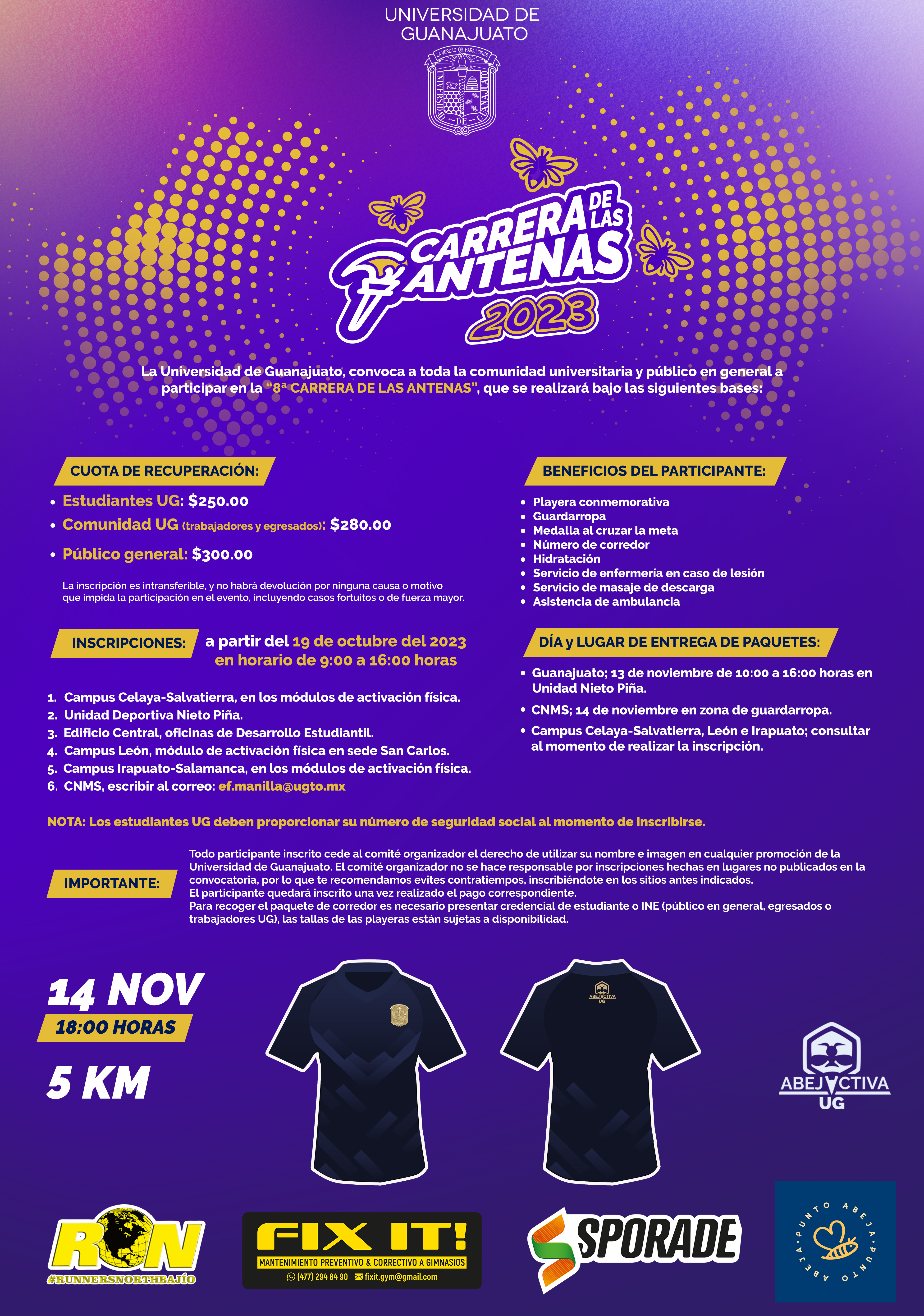 La Universidad de Guanajuato te invita a participar en la Octava Carrera de las Antenas, el próximo 14 de noviembre en punto de las 18:00 horas.