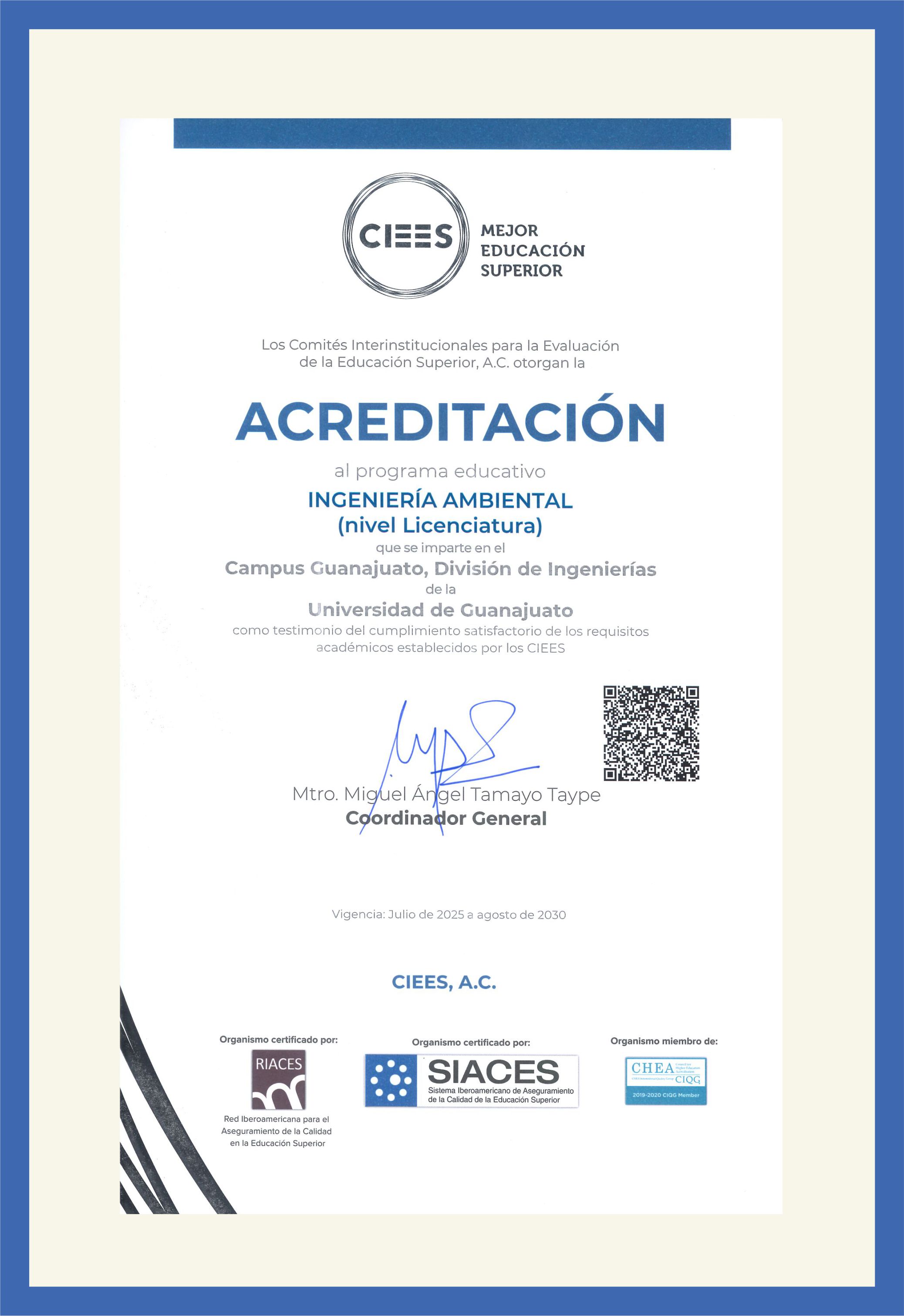 (modalidad escolarizada), Acreditación por cinco años, vigencia de julio de 2025 a agosto de 2030.