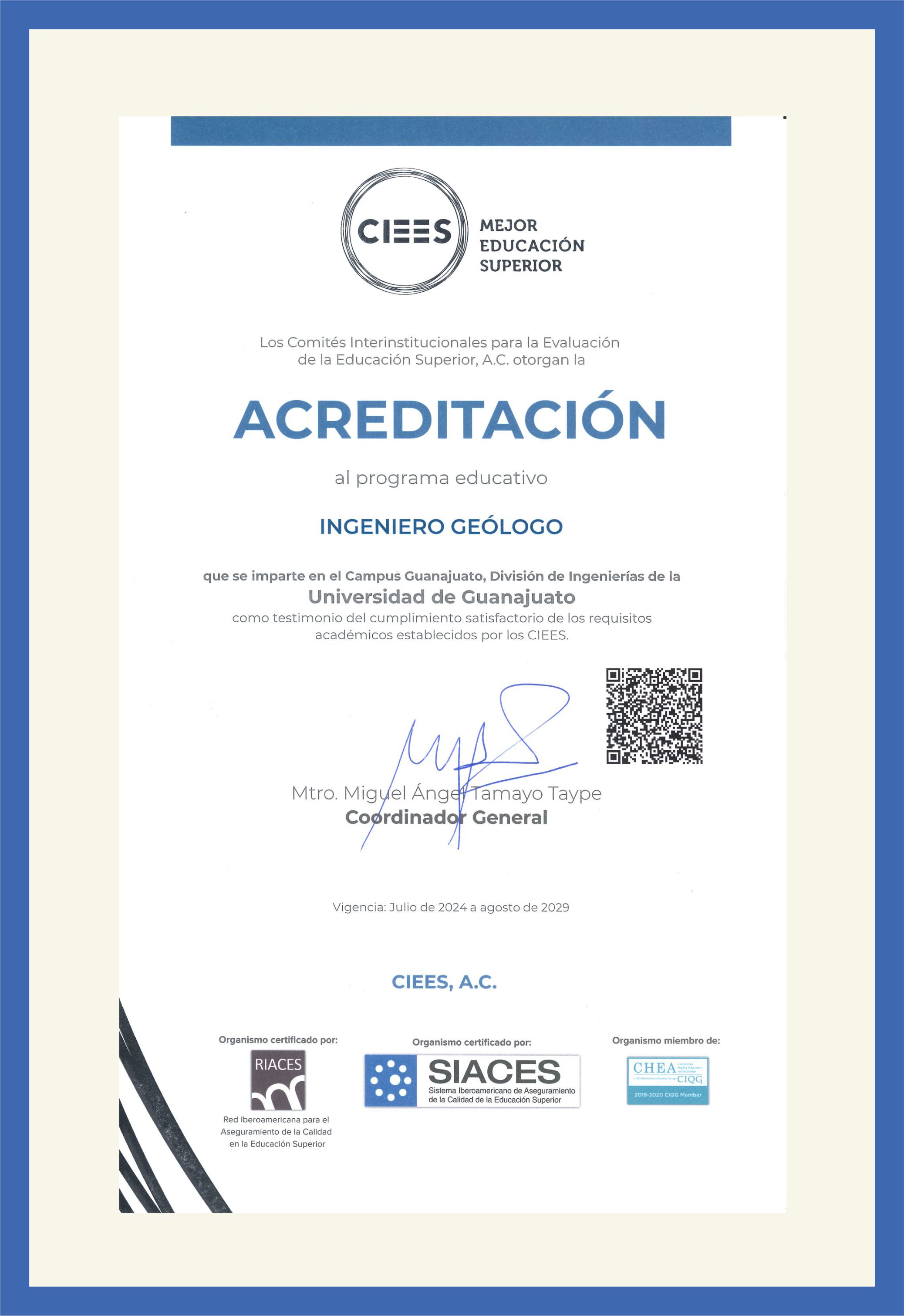 (modalidad escolarizada), Acreditación por cinco años, vigencia de julio de 2024 a agosto de 2029.