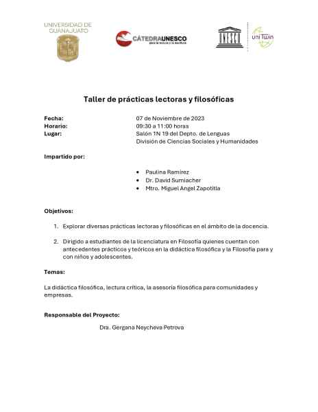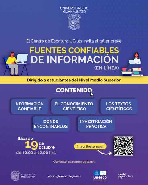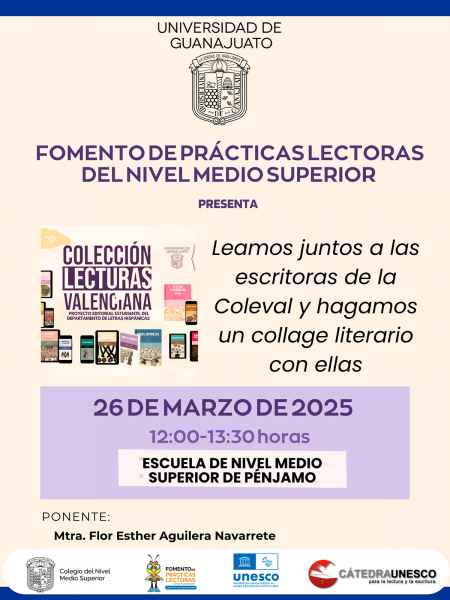 El Colegio del Nivel Medio Superior a través del Programa de Prácticas Lectoras y Centro de Escritura UG, les invita: