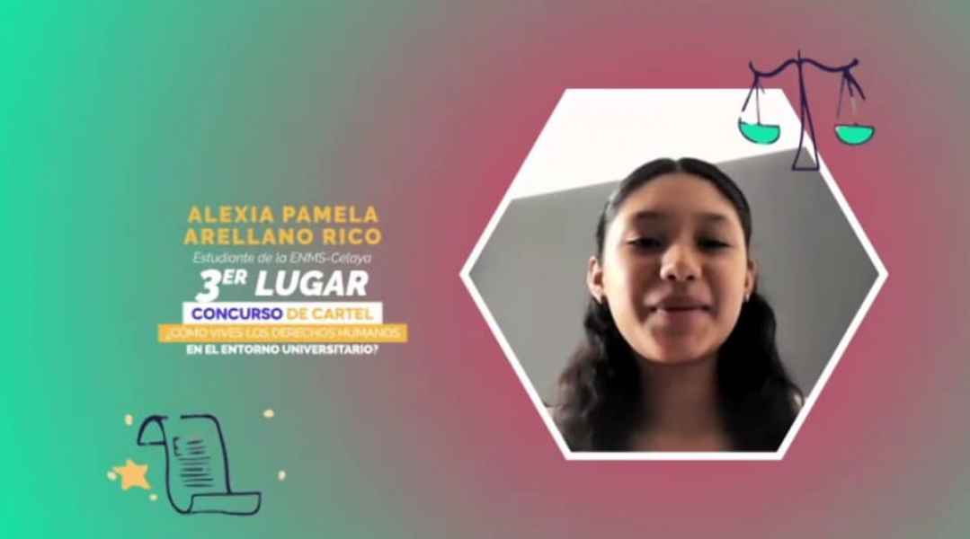 En el marco de esta conmemoración también presentaron a las y los ganadores del Concurso del Cartel “¿Cómo vives los Derechos Humanos en el entorno universitario?”, esto con la finalidad de promover los valores que representan a la Casa de Estudios, y con el objetivo de difundir el respeto a las garantías individuales desde la perspectiva estudiantil.