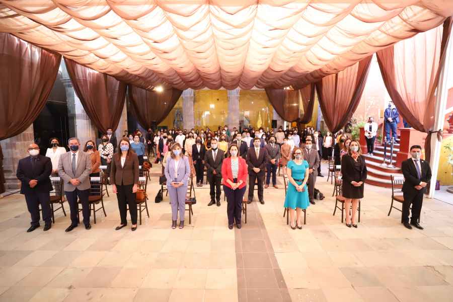 Guanajuato, Gto., a 28 de febrero de 2022.- Se llevó a cabo en la Universidad de Guanajuato (UG) la ceremonia inaugural de la conformación estudiantil "Abejas Embajadoras de Derechos Humanos", quienes difundirán información concerniente a los Derechos Humanos en aras de promover una cultura de paz en el entorno universitario.
