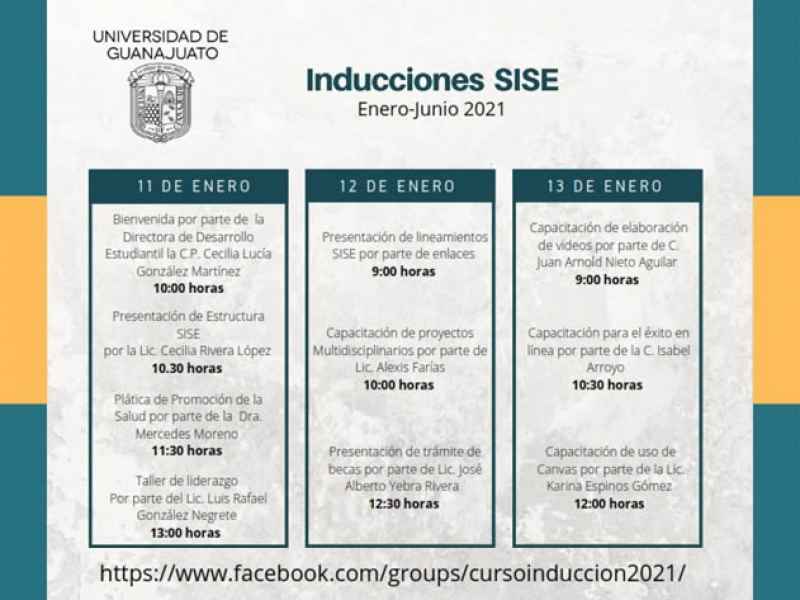 Dichas inducciones corresponden al periodo enero – junio 2021dirigidas a un aproximado de 285 personas, entre las cuales están los orientadores de las cinco áreas, coordinadores de área del SISE, Coordinadores de Desarrollo Estudiantil de los campus, entre otros.