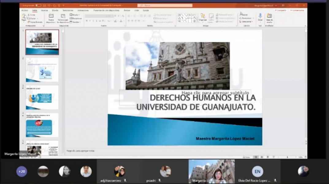 La ponente fue la Mtra. Margarita López Maciel, la Defensora de los Derechos Humanos en el Entorno Universitario de la Universidad de Guanajuato.
