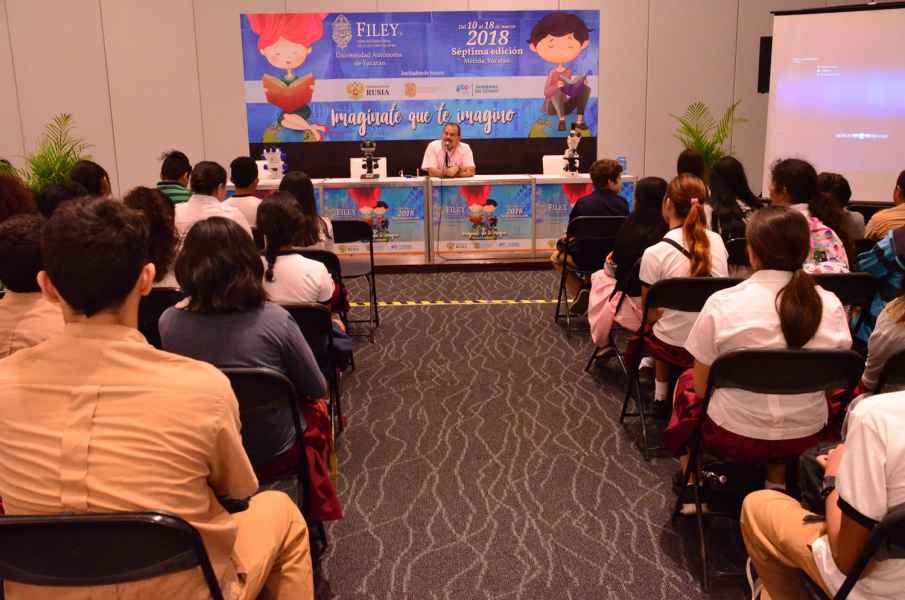 Mérida, Yuc., 13 de marzo de 2018.- Divulgar la investigación científica y mostrar el lado estético de la naturaleza es el objetivo del taller “Microscopía y Microfotografía”, que el Dr. Armando Obregón Herrera, profesor e investigador del Departamento de Biología, de la Universidad de Guanajuato, realizó en la Feria Internacional de la Lectura Yucatán (FILEY) 2018.
