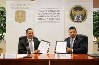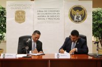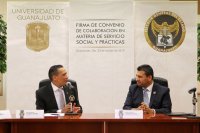 Guanajuato, Gto., a 28 de octubre de 2019.- Con la firma de un convenio entre la Universidad de Guanajuato (UG) y la Fiscalía General del Estado de Guanajuato (FGE), encabezada por los titulares de ambas instituciones, se formalizó la colaboración en materia de servicio social y prácticas profesionales.