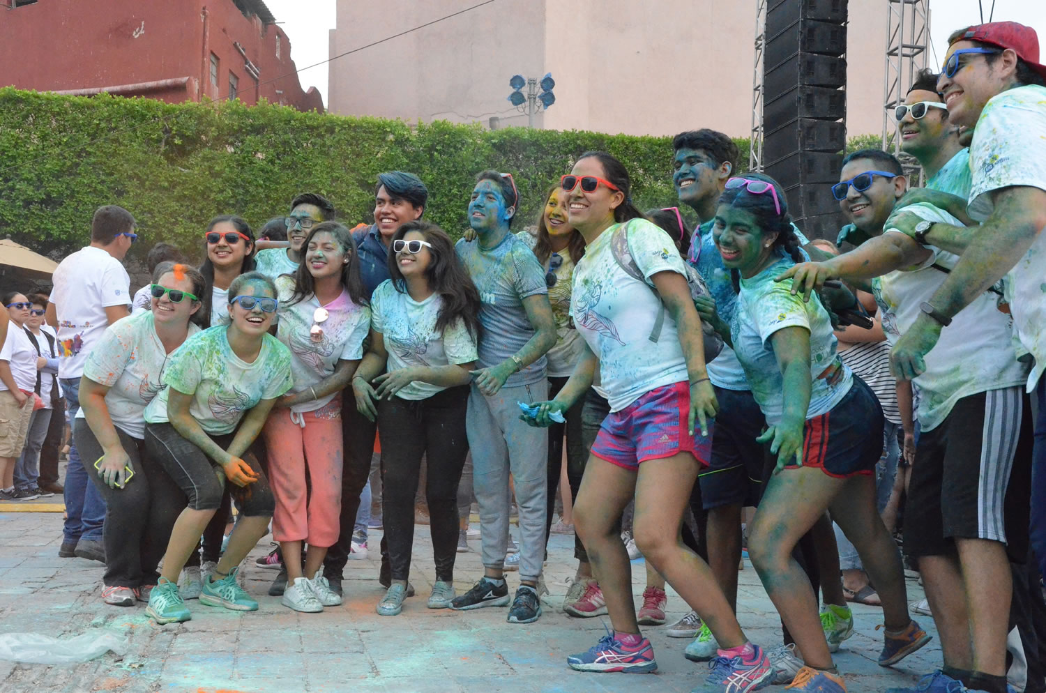 Estudiantes de diversos programas de estudios de todos los campus universitarios y del Colegio de Nivel Medio Superior, participaron en esta lúdica actividad, en la que reunieron a diversos espectadores urbanos que los animaban a correr, al mismo tiempo que sorprendidos veían cómo los playeras blancas iban cambiando de colores intensos: azul, rosa, verde, amarillo, formando un arcoíris en su celebración.