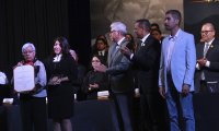 La distinción al Mtro. Héctor Quintanar fue entregada a la Sra. Ofelia Fragoso Sánchez, viuda del homenajeado. Mientras que la del Mtro. Gallardo Carrillo fue recibida por sus hijos, Rosa María y José Antonio Gallardo.