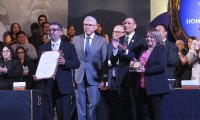 Al referirse a las trayectorias del Mtro. Héctor Quintanar Prieto y del Mtro. Jesús Gallardo, el Rector General dijo que fueron forjadas con base en esfuerzo, disciplina, dedicación y oficio artístico. Ambos personajes –enfatizó- constituyen eslabones de una tradición, puentes entre generaciones y cumbres de realización de sus propias obras.
