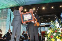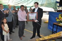 OSUG's guest director, M.A. Iván López Reynoso and, representing OSUG, the first violin Dmitry Kiselev received an award from the Municipal Presidency of Tierra Blanca, for their participation in this concert.