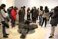 A sculpture that stands out is the one made by stone felling with hair, "the stone is hollow inside and from the windows come out hair that were glued one by one until creating a braid."