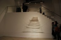 Another of the works done is a 6m high ladder made with kneaded hair and cotton thread. Equally, you can observe an arch of hair from different people, reason why, it creates a color figure, since there is red, blonde and brown hair, etc.