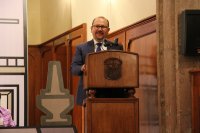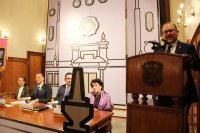 The coordinator of the Determining Commission of Precious Goods, Dr. María Guevara Sanginés spoke about the background of the University of Guanajuato, since it emerged as a hospice for Jesuits, and the historical context where UG's Auditorium and stairway was built.