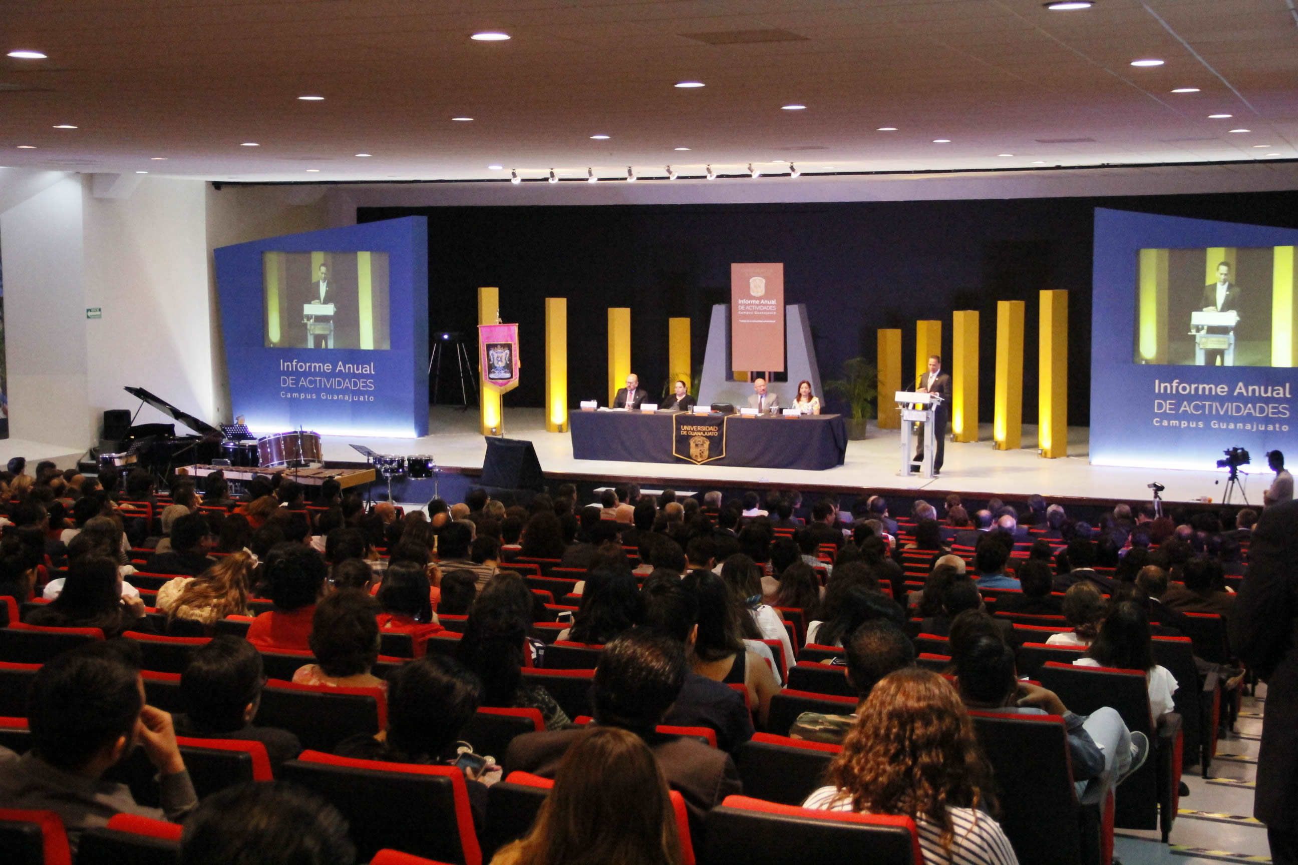 Guanajuato, Gto., March 22, 2017.- During 2016, the joint work of the community of Campus Guanajuato, allowed the increase in the enrollment and the strengthening of the quality of the 79 educational programs currently taught at the mentioned academic entity, explained the Rector, Dr. Teresita de Jesús Rendón Huerta Barrera, while presenting the Annual Activity Report.