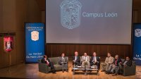 After the conference, there was a panel where Dr. Carlos Hidalgo Valadez, Rector of Campus León from UG, was the moderator. In this panel participated Dr. Daniel Alberto Díaz Martínez, Secretary of Health of the state of Guanajuato; and Dr. Raúl Arias Lovillo, Academic Secretary of UG.