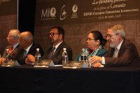 Diana Cardona, representing Ana Sara Ferrer, President of the Cervantine Foundation of Mexico, mentioned that these colloquiums have been forum, platform and detonators of uncountable reflections and analysis of the great topics of culture, so she celebrated these spaces are still available for new generations.
