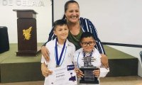 ENMS students Salvatierra, Julieta del Llano and Nicolás Ortega Guzmán, won gold medal and accreditation to travel to Spain to present their winning project "Aprendo, Cuido y me Divierto".