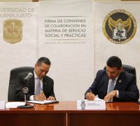 Guanajuato, Gto., October 22, 2019.- With the signing of an agreement between the University of Guanajuato (UG) and the Attorney General's Office of the State of Guanajuato (FGE), headed by the holders of both institutions, the collaboration in the field of social service and professional practices was formalized.