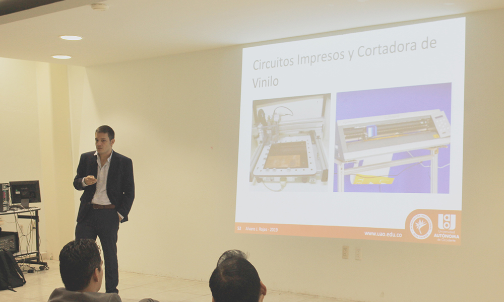Salamanca, Gto., a 4 de noviembre de 2019.- El Dr. Álvaro José Rojas Arciniegas, del Departamento de Automática y Electrónica de la Universidad Autónoma de Occidente en Cali, Colombia, presentó en la División de Ingenierías de la Universidad de Guanajuato (UG) la conferencia “El rol del prototipado y la manufactura digital en procesos de desarrollo de sistemas mecatrónicos”.
