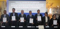En el evento se dieron cita autoridades unipersonales de la Casa de Estudios, alcaldes y representantes de los Municipios involucrados en el convenio y del gobierno estatal.}