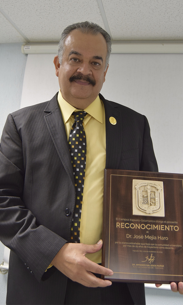 En su despedida, el profesor recibió un reconocimiento por su importante contribución a la educación, por parte del Rector del Campus Irapuato–Salamanca, Dr. Armando Gallegos Muñoz; otro de parte de sus compañeros docentes, y uno más de parte de su esposa e hijas, quienes participaron en la emotiva despedida.