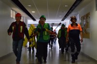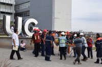 El presidente de la unidad interna de protección civil, Dr. Faustino Quintana Muñoz, acompañado por el secretario de la misma unidad, Mtro. Vicente Alejandro Bravo Miranda, apoyados por las brigadas de primeros auxilios, de incendios, de evacuación de inmuebles y de búsqueda y rescate, organizaron este ejercicio para poner a prueba la capacidad de reacción en este supuesto.
