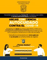 Guanajuato, Gto. a 21 de julio de 2020.- La Universidad de Guanajuato (UG) invita a la comunidad estudiantil del Nivel Superior a realizar su Servicio Social Universitario en el proyecto "Abejas con-ciencia y autocuidado contra el COVID-19", para fomentar acciones preventivas que contribuyan a mitigar la propagación del virus SARS CoV2 (COVID-19).