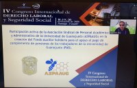 Guanajuato, Gto., 23 de noviembre de 2020.- La Asociación Sindical de Personal Académico y Administrativo de la Universidad de Guanajuato (ASPAAUG) participó en el IV Congreso Internacional de Derecho Laboral y Seguridad Social, llevado a cabo de manera virtual del 18 al 20 de noviembre de 2020, organizado por el Centro de Investigación y Desarrollo Ecuador, el Centro de Estudios Transdisciplinarios Bolivia y la Universidad San Gregorio de Portoviejo.