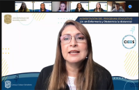 Al referirse al proceso de enseñanza-aprendizaje en el programa educativo de Enfermería y Obstetricia que se imparte a través de la plataforma digital, mencionó que éste se enfocó no ya en el manejo de las tecnologías, sino en una formación innovadora, retadora y orientada a buscar mejoras en la salud humana. "El nuevo enfermero o enfermera, debe ser capaz no solo de curar, sino de promover la salud, educar al paciente y prevenir enfermedades. Buscamos formar líderes en enfermería, socialmente responsables, conscientes de las necesidades en salud", dijo.