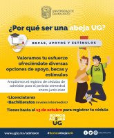 Guanajuato, Gto., a 5 de octubre de 2021.- La Universidad de Guanajuato (UG) amplió hasta el 15 de octubre el periodo de expedición de cédulas de admisión a licenciaturas y bachilleratos (niveles intermedios) para el periodo semestral enero-junio 2022.