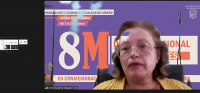 "Mujeres y luchas por la vida: un análisis de los procesos psicosociales vinculados a la defensa del territorio", impartida por la Dra. Susana Delgado Rodríguez de la Universidad de Guadalajara (UdeG) quien habló sobre cómo comprender los procesos subjetivos que viven las mujeres defensoras del territorio y de la vida, desde una perspectiva de género e interseccional que permitan visibilizar su lucha.
