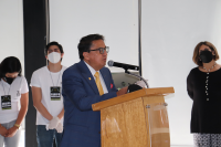 En su mensaje festinó que se trate de un evento por y para estudiantes, que son la razón y esencia del ser de la comunidad universitaria, y exhortó a las y los organizadores y participantes, a vivir y disfrutar cada momento, ahora que luego de dos años, la pandemia ha cedido un poco y ha permitido disfrutar de grandes encuentros como este.