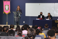 En su mensaje, la Dra. Isaura Arreguín Arreguín, Directora de la División de Ciencias de la Salud e Ingenierías, exhortó a la comunidad de estudiantes de Psicología a orientar, apoyar y resolver de manera profesional los padecimientos emocionales, afectivos o conductuales de las personas, a través de los valores y respeto.