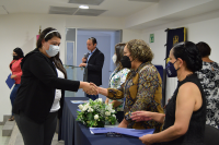 En ceremonia presidida por la Secretaria Académica de la División de Ciencias de la Vida, Mtra. Ma. Susana Pérez Camacho, por la coordinadora del curso y por docentes del Departamento, se hizo entrega de las constancias a las enfermeras en activo que optaron por la educación continua para su consolidación profesional.