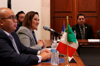 Por su lado, la Dra. Cecilia Ramos Estrada, Secretaria General de la Universidad de Guanajuato, en representación del Dr. Luis Felipe Guerrero Agripino, Rector General de la UG, mencionó lo felices que se encuentran por regresar a dicha actividad de manera presencial. Remarcó el gran trabajo que han realizado por parte del Colegio del Nivel Medio Superior para la realización de ese tipo de eventos. Les dio una cordial bienvenida, y mencionó que Guanajuato, México, es un lugar pintoresco y cálido, donde está segura de que los reciben con los brazos abiertos. La Universidad de Guanajuato tiene mucho interés en ese tipo de intercambios.
