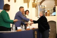 Guanajuato, Gto., a 6 de diciembre de 2022.- Autoridades de la Universidad de Guanajuato (UG) encabezaron la ceremonia de entrega de reconocimientos a integrantes del personal académico y administrativo con más de 40 años de servicio en el Colegio del Nivel Medio Superior (CNMS).