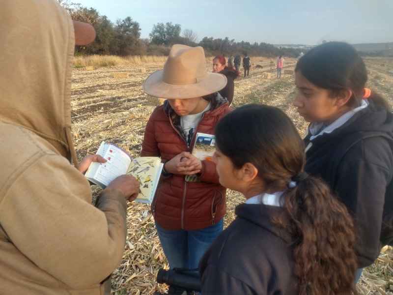 Irapuato, Gto. a 23 de marzo de 2023.- En el Centro Interdisciplinario de Agroecología de la Universidad de Guanajuato (UG), se llevó a cabo el taller de aves asociadas a los agroecosistemas, mediante el cual las y los estudiantes del programa de Ingeniería en Agronomía aprendieron a realizar un muestreo de aves, encontrando 20 especies en El Copal, comunidad donde la División de Ciencias de la Vida tiene su sede.